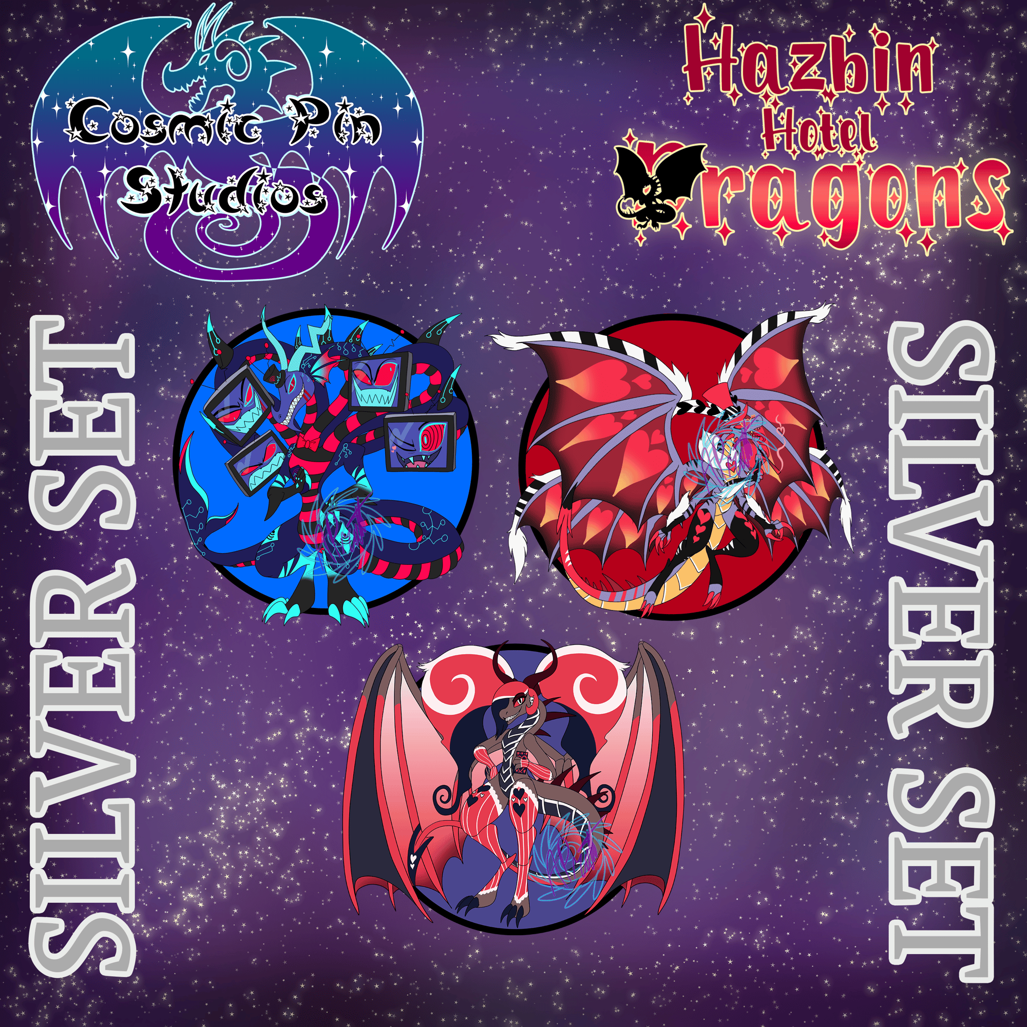PRE ORDER HAZBIN DRAGONS: The Vees Dragons SILVER SET